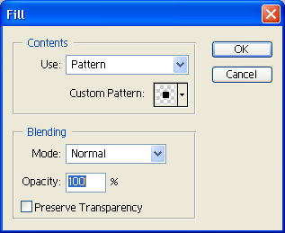الآن إذهب إلى  Edit > Define Pattern .. وثم إختر إسم للشكل .. بعد ذلك إرجع لملف الخلفية التي تريد تطبيق التنقيط عليها .. الآن إضغط غلى الطبقة ” طبقة النقاط .. ثم إذهب إلى :
