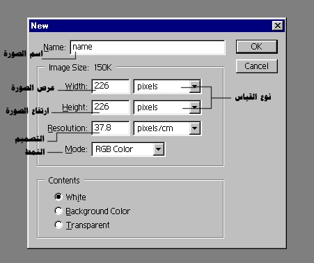 ثانيا:ستظهر لك نافذة وهي اعدادات الملف الجديد: