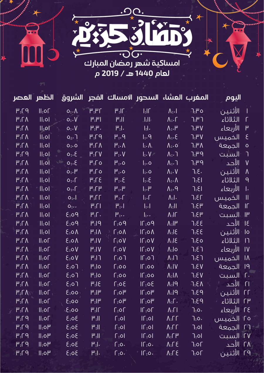 امساكية شهر رمضان ملف مفتوح قابل للتعديل