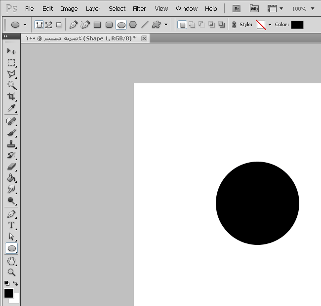 إذاً بمجرد ان نختار شكل من الأشكال التي في القائمة فإننا نستطيع رسمها فمثلاً نختار الدائرة ثم نرسمها على الصفحة كالتالي :